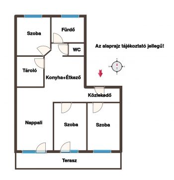 - 8 m²-es terasz, amely két szobából is megközelíthető