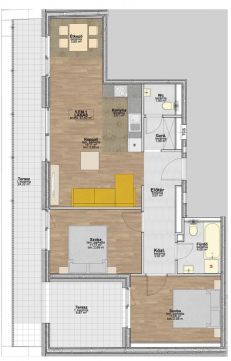Élhető terek: Minden lakáshoz tartozik egy tágas, 5nm- 30 nm közötti terasz.