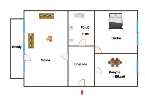 - 48 nm-es, 2 külön nyíló szoba, tágas konyha, előtér, fürdőszoba, és egy nagyméretű erkély a helységlistája.