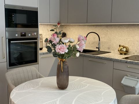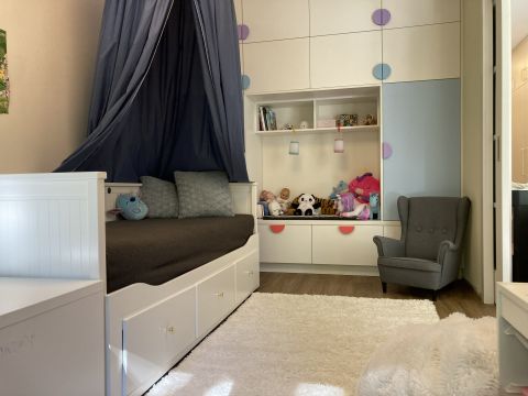 A lakás minden részletében a tudatos tervezés köszön vissza: nemcsak szép, hanem élhető, logikus és hosszú távra is kényelmes otthon.