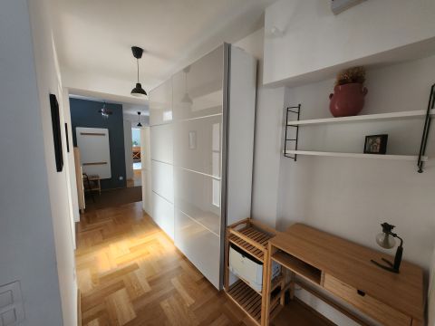 A jelenlegi elrendezés két lakás egybenyitásával jött létre 2022-ben, amikor részleges felújítás is történt.
