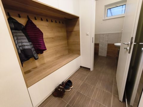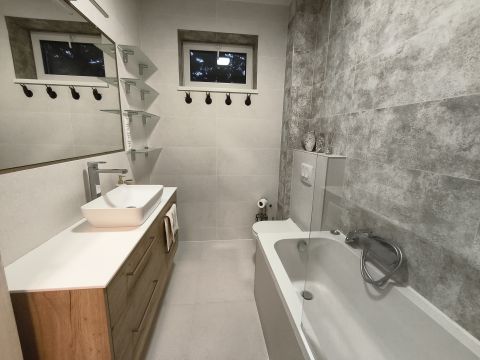 Előtérben és fürdőszobában igényes kerámia burkolatok
