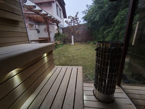 Prémium kivitelezésű, 6 személyes finn elektromos szauna hidegvizes merülő dézsával