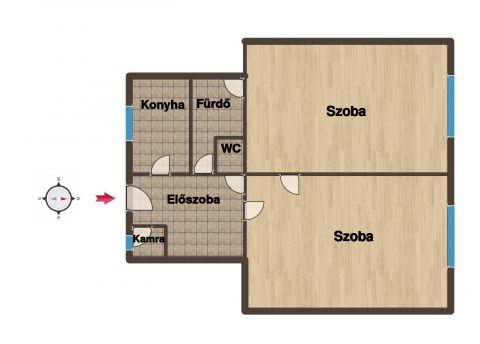 Két különnyíló parkettás szoba