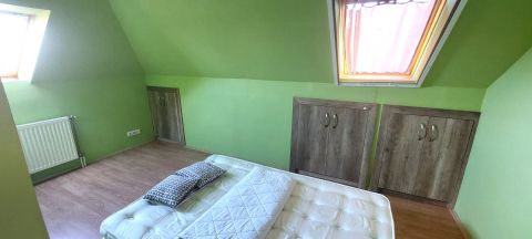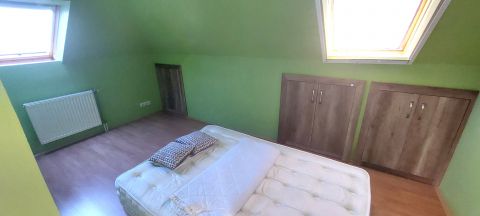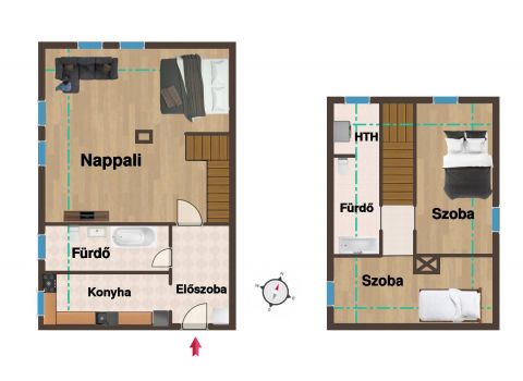 A felső szinten van a két hálószoba , valamint egy fürdő kis háztartási helyiséggel.