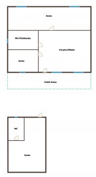 Helyiségek: 2 szoba, konyha + étkező, WC + fürdőszoba