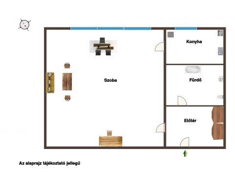 A konyha felszerelt. A fürdőben csak a mosógép hiányzik. Megegyezés esetén a tulajdonos biztosítja.
