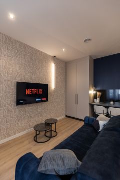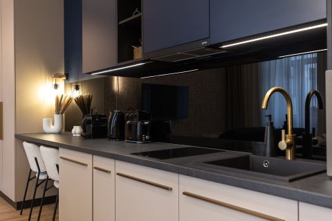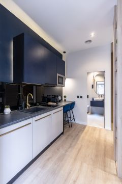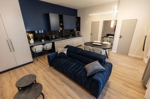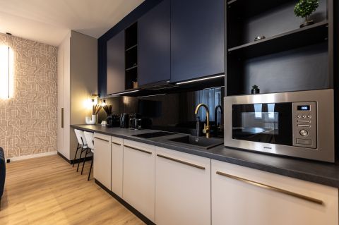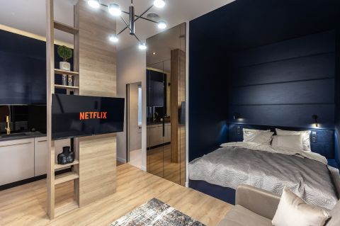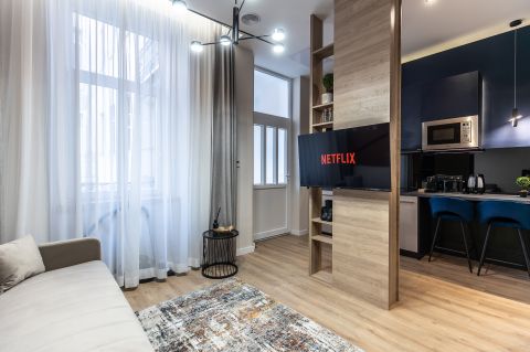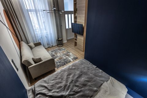 A külön bejárattal rendelkező, 24 nm-es stúdiólakás konyha-nappali hálófülkéből, zuhanyzós fürdőszobából áll.