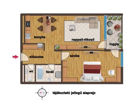 - napfényes, D tájolású, tágas térérzetű 2 szobás lakás