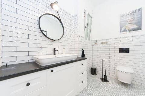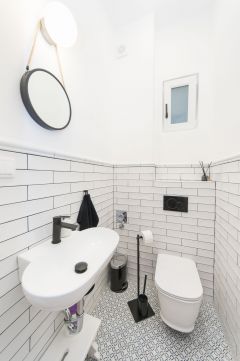 modern fürdőszoba: mosdó + WC + bidé + esőztető zuhanyzó