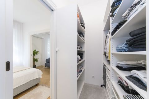 A hálószobából nyíló gardrób rendszere pedig maximális rendezettséget és luxusérzetet ad.