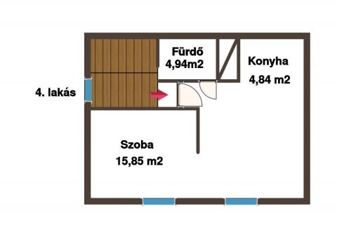 Az ingatlan teljesen felszerelt konyhával,ű valamint egy kényelmes hálófülkével és zuhanyzós fürdőszobával rendelkezik. A lakáshoz tartozik továbbá egy külön mosókonyha, ahol mosógép és szárítógép is helyet kapott.