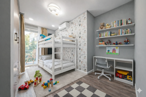 A lakás három kényelmes szobát kínál: egy tágas szülői hálót, egy gyerekszobát és egy dolgozó- vagy vendégszobát.