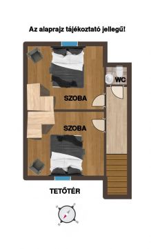 A belső kétszintes elrendezés tágas és praktikus, tökéletes arra, hogy minden családtagnak meglegyen a saját kis kuckója. Jelenlegi kialakításában nappali és két szoba található.