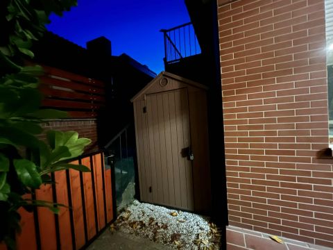 A kert öntözőrendszerrel ellátott, gondozása egyszerű és kiszámítható.