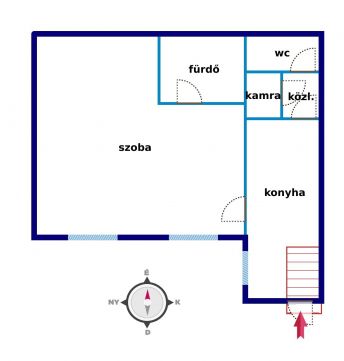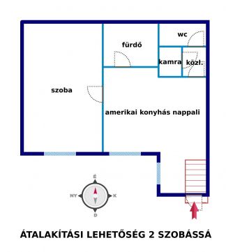 egy 35 m2-es, közepes állapotú, 1 nagyszobás, de könnyen amerikai konyhás nappali