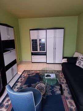 A lakás tartozéka marad a hálószobában a kanapé és a nappaliban található szép állapotú bútorzat.