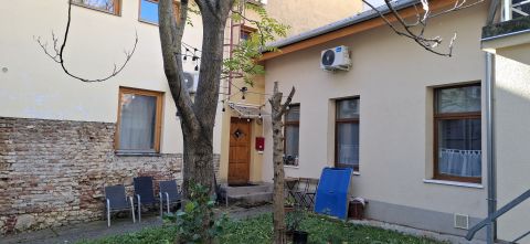 A társasházat körülvevő csendes, közös kert igazi ritkaság a belvárosi ingatlanok között.