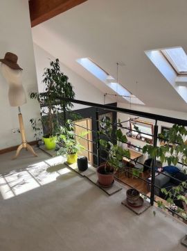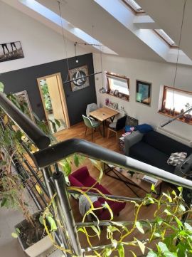 a galéria beépítésével kialakított háló és dolgozó/gardrób rész különleges térérzettel bír.