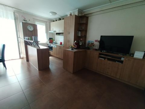 Belső két szintes 30 nm.-es fedett előkerttel rendelkező, napfényes, dupla komfortos, 87 nm.-es amerikai konyhás + 3 szobás panel lakás várja új tulajdonosait.