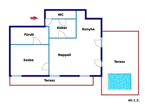Lakás 65,01 nm + terasz 22,06 nm + 62,15 kert