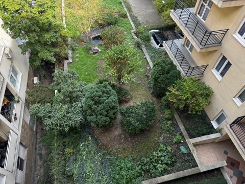 Az első emeleti ingatlan belső kertre néz, így csendes, mégis mindenhez közel van.