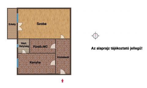Helyiségeit tekintve :Szoba, konyha, közlekedő, háztartási helyiség, fürdő+wc.