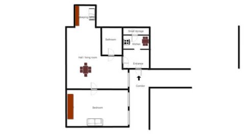 2 hálószoba franciaággyal, gardróbbal és íróasztallal. 1 fürdőszoba zuhanyzóval, wc-vel és külön mosdó.