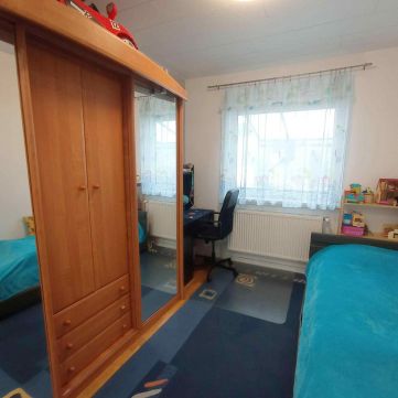 A redőnyös ablakok, a hálókban távirányítós redőnyök és szúnyoghálók, valamint a klíma garantálják a kényelmet minden évszakban.