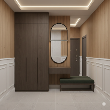 встроенной мебелью с деревянной отделкой
