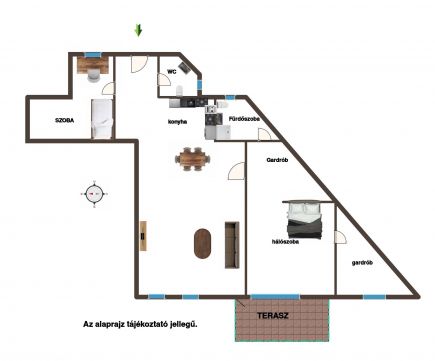 Az ár tartalmazza a teljes berendezést és a beépített bútorokat.