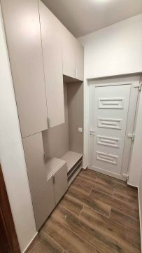 Az ingatlan részben bútorozott állapotban, a képeken látható beépített, gépesített konyhával, beépített előszobaszekrénnyel, valamint a fürdőszobában található tükrös szekrénnyel kerül bérbeadásra.