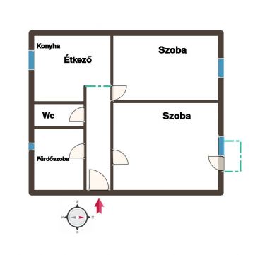 A lakás 52 nm, 2 szoba, külön wc, fürdőszoba, étkező konyhával, közlekedő. A lakáshoz tartozik egy erkély, ami a belső parkra néz.