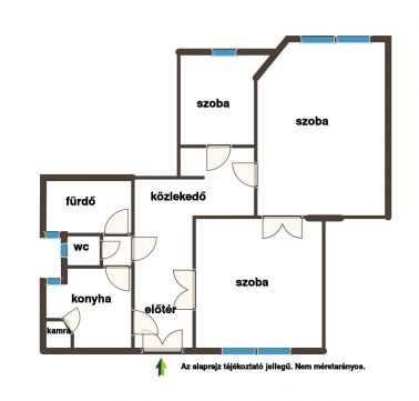 Állapota felújítandó. Elosztásának köszönhetően akár 4 szoba is kialakítható.