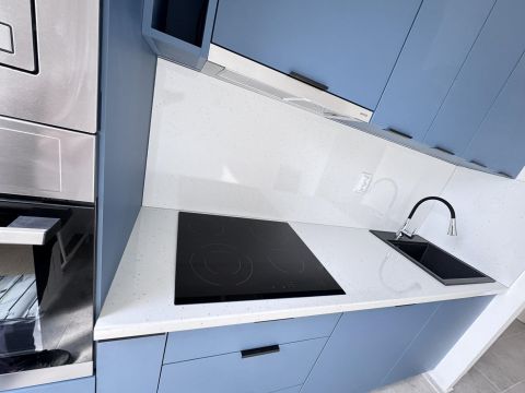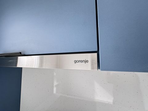 Az egyedi tervezésű konyhában beépítésre kerültek minőségi konyhai gépek, (Electrolux és Gorenje).
