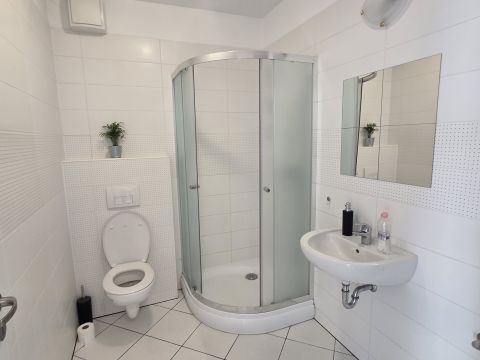 A lakás elrendezése praktikus, minden négyzetméter jól kihasznált, a terasz és a kert pedig teljesen új életszintet ad hozzá reggeli kávé, home office vagy esti kikapcsolódás saját zöld környezetben.