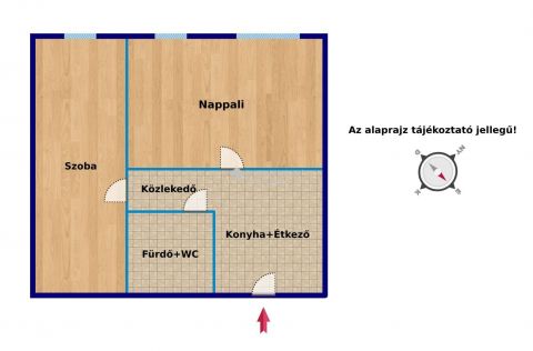 a másik irányban egy közlekedő ahonnan a hálószobába és a fürdőszobába