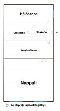 Elrendezése: nagy utcai nézetű nappali, mely ajtóval zárható. Továbbá hálószoba, konyha+ étkező, Fürdő Wc-vel és egy tágas előszoba.