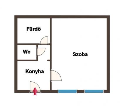 Egy tágas, világos szoba, konyha, fürdőszoba és külön wc található benne.