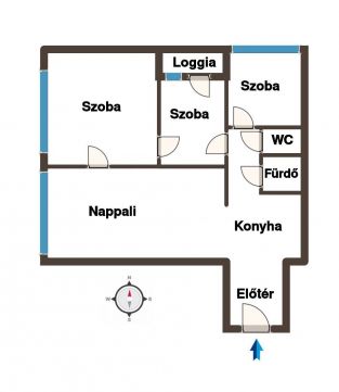 - nappali+ 3 külön nyíló szoba,
