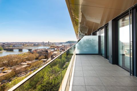 Az Elysium rezidencia a hazai luxusingatlan-piac kiemelkedő projektje, ahol a visszafogott elegancia és a magas szintű szolgáltatások természetes egységet alkotnak. A 70 m²-es lakás egy 30 m²-es terasszal egészül ki, ahonnan zavartalan kilátás nyílik a Dunára, a Parlamentre, a Lánchídra és a Margit-szigetre. A negyedik emeleten elhelyezkedő ingatlan világos, arányos terekkel és nagy belmagassággal rendelkezik.