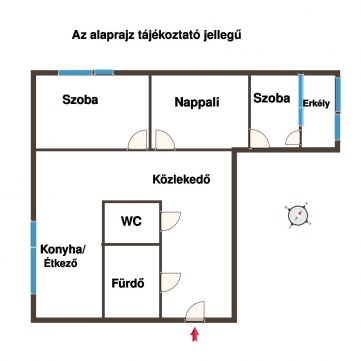 A jó elosztásnak köszönhetően 2 szoba,nappali és konyha étkezővel lett kialakítva.