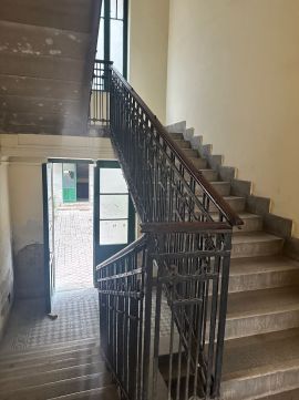 A társasház (1911) több lépcsőházból áll. Ez a lépcsőház a Mihálkovics utcai bejárathoz esik közel. Kb 8 lépcsőfok vezet a lakáshoz, ezért nem akadálymentes!