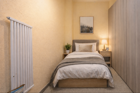 -1 szoba csendes, tágas zöld belső udvarra néző (jelenleg gardróbként funkcionál, ezért a kép AI kép)