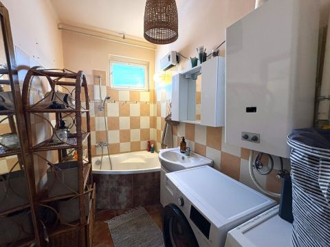 A két lakószoba klímával felszerelt, délkeleti tájolású, világos. A felújított konyha ablakából szép kilátás nyílik a Szent István téri víztoronyra. A fürdőszoba igényesen kialakított, sarokkáddal felszerelt.