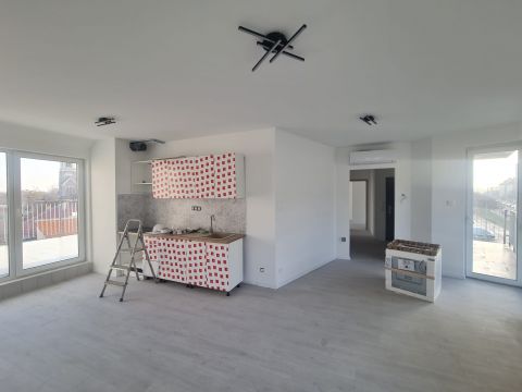XV. kerület kiváló részén, új építésű, mindössze 7 lakásos társasház exkluzív penthouse lakása hosszú távra kiadó.