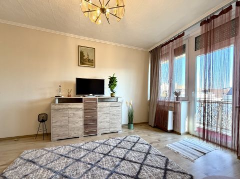 A lakás azonnal költözhető, rendezett lépcsőházban található, központi elhelyezkedésének köszönhetően minden a közelben van: üzletek, buszmegálló, iskola, kávézók, orvosi rendelő, valamint a város kulturális központja, a színház is pár lépésre található