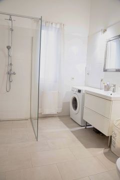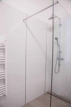 Tágas fürdő walk-in zuhanyzóval
