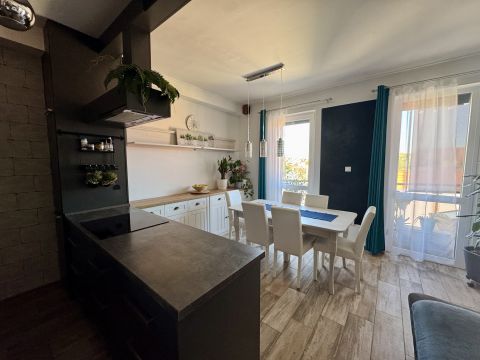 Az erkély utcára néz, a lakás atmoszférája nyugodt és otthonos, miközben a környék kiváló elhelyezkedése gyors elérhetőséget biztosít a város bármely pontjára.