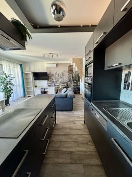 A lakás teljes bútorzattal és háztartási gépekkel felszerelt (mosógép, mosogatógép és szárítógép is rendelkezésre áll), állapotuk kifogástalan, valóban kompromisszummentes megoldás a mindennapokra.